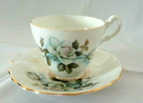 Title (ebay affiliate link): VINTAGE "CONSORT" TEA CUP AND SAUCER" WHITE ROSE" ENGLISH FINE BONE CHINA