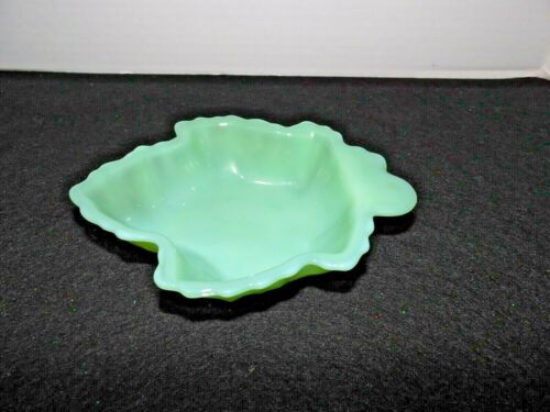 Fire King Jade Green Jade-ite Opaque Milk Glass Maple Leaf Bowl Candy Dish