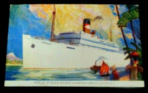 Vintage 1940s prelinen postcard of Great White Fleet ..United Fruit Company