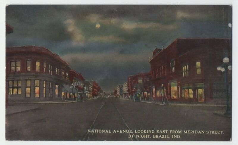 Title (ebay affiliate link): c1910 Brazil Indiana National Avenue Looking East fr Meridan Street at Nigh