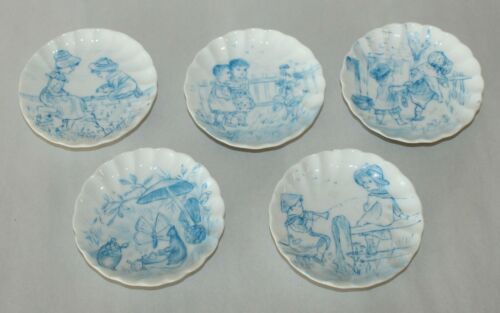 FIVE ANTIQUE Blue & White DOLL''S DISHES Child''s Tea Set Plates