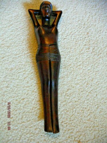 Vintage Wood Hand Carved Naked Nude Women Nut Cracker, Barware, 13", GC