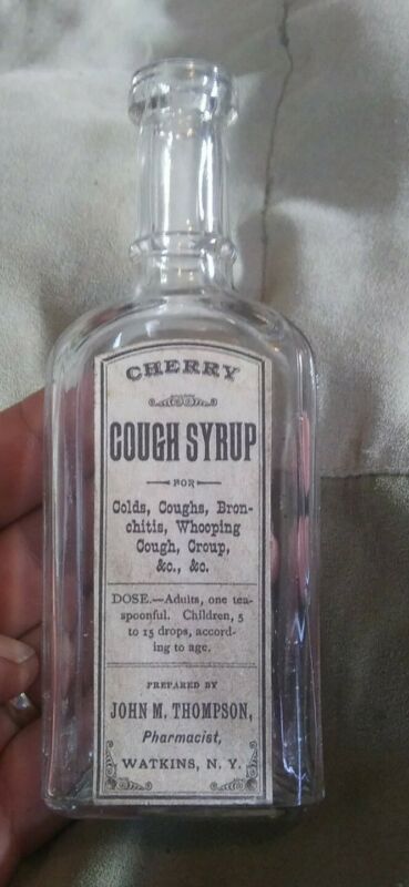Title (ebay affiliate link): Antique Clear Glass Bottle Medicine Advertising "Cherry Cough Syrup" Paper Label