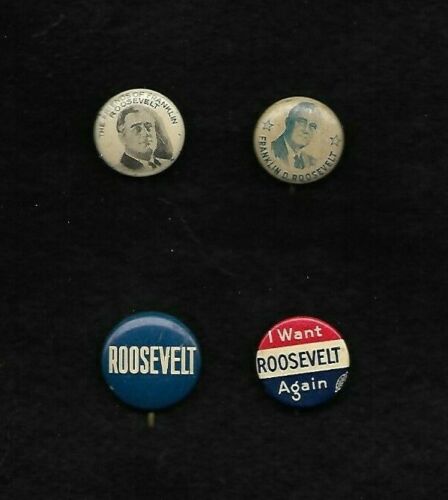 4 original,classic FDR Franklin Roosevelt Presidential campaign buttons 1940s