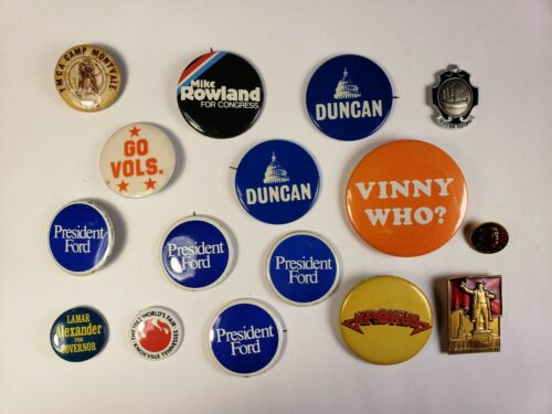 Title (ebay affiliate link): Lot of vintage political campaign pin-back buttons. Ford. YMCA. Stalin pins. etc