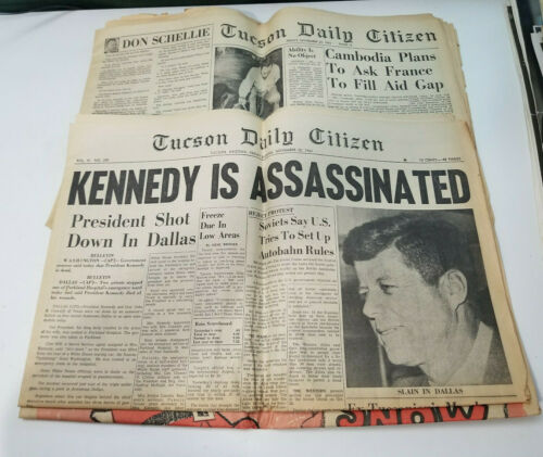 Title (ebay affiliate link): Kennedy Assassination AZ Tucson Daily Citizen November 22 23 Newspaper 1963 JFK
