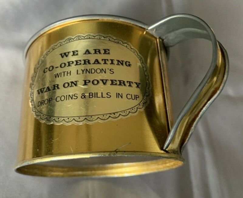 Title (ebay affiliate link): Pres. LYNDON JOHNSON WAR ON POVERTY Metal CUP Political Propaganda Piece 1964-68