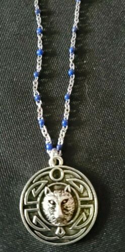 Title (ebay affiliate link): Antique Silver Tone and Blue Celtic Wolf stainless steel necklace