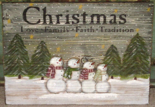 Title (ebay affiliate link): *~*PRIMITIVE*~* HP FOLK ART PRIM SNOWMEN * TREE * CHRISTMAS *~* RECLAIMED WOOD