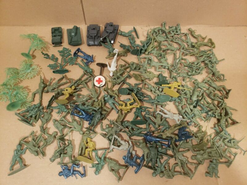 Title (ebay affiliate link): Large Lot Vintage Plastic Army Men military figures Marx Hong Kong Unmarked