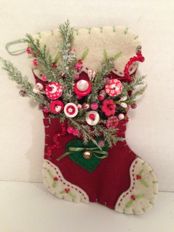 Title (ebay affiliate link): VTG Christmas Button Bouquet/Sock-Prim-Shabby Cottage Chic-Rustic Farmhouse