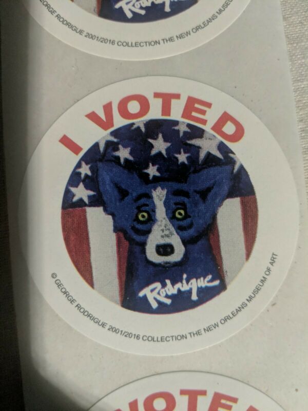 Title (ebay affiliate link): George Rodrigue Blue Dog "I Voted" Stickers Louisiana 2016 Election set of 5