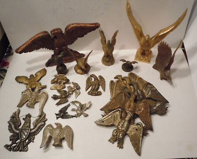 Box Full of Antique Banjo Clock Brass Eagles Finials