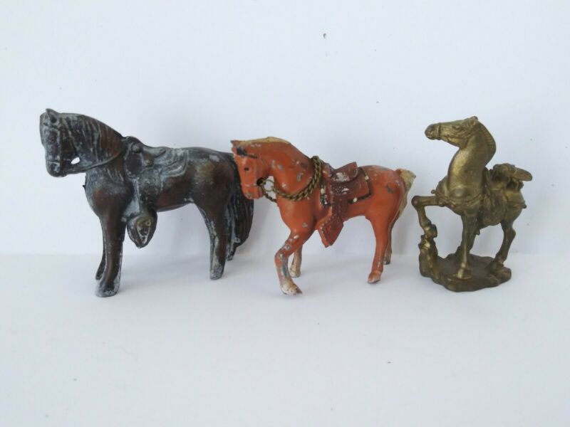 LOT 3 ANTIQUE-VTG-OLD Brass,Bronze,lead Horse Figure Lot RARE UNIQUE LOT
