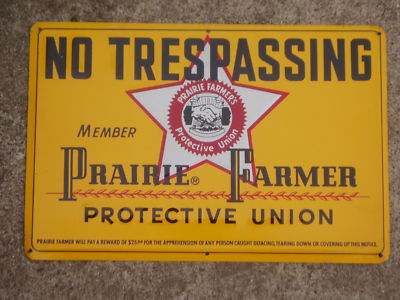 Vintage Prairie Farmer No Trespassing Union Sign.