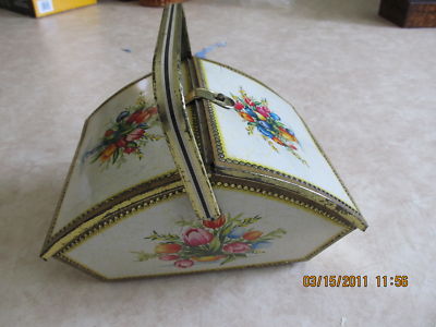 VICTORIA Vintage Sewing Basket Tin handle Opens