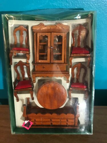 VINTAGE WOOD DOLLHOUSE FURNITURE DININGROOM ~ 7 PCS NEW IN BOX