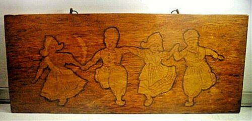 VINTAGE PYROGRAPHY PLAQUE- DANCING DUTCH CHILDREN
