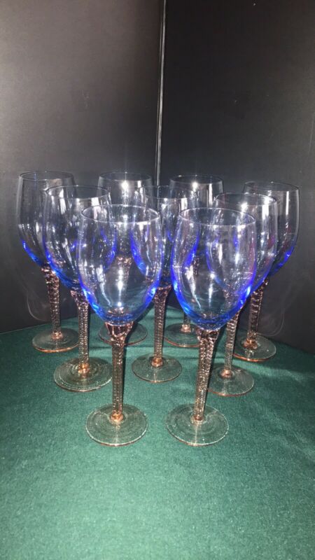 Nine Gorgeous Blue And Pink Vintage Wine Glasses