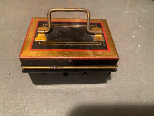 Lovely Tiny Antique "ENGLISH MAKE" Stenciled Locking Tin Box Box