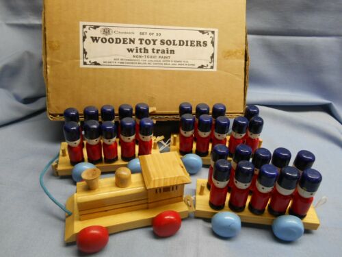 Title (ebay affiliate link): CHADWICK Set Of 30 Wooden Toy Soldiers With Train (only 29) 1986 Good Condition