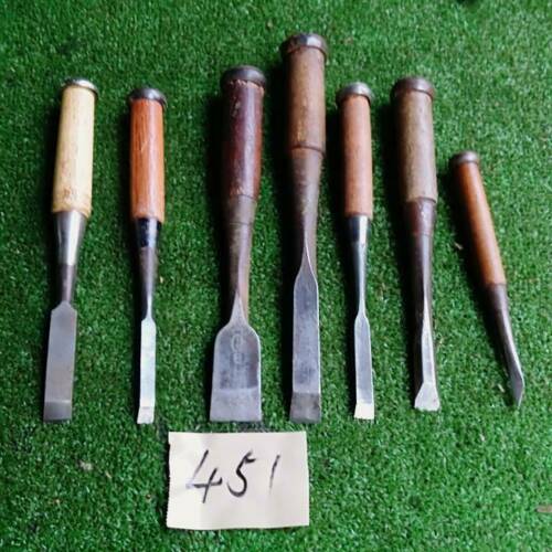 Title (ebay affiliate link): Japanese Vintage Chisel Nomi 7 pcs carpentry wooden tool shape Good !