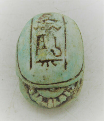 Title (ebay affiliate link): CIRCA 500 BCE ANCIENT EGYPTIAN GLAZED FAIENCE SCARAB BEAD SEAL RARE