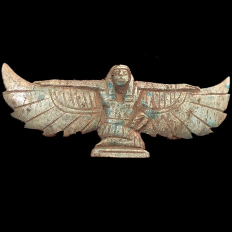 Title (ebay affiliate link): BEAUTIFUL ANCIENT EGYPTIAN WINGED HATHOR AMULET 300 BC (2)