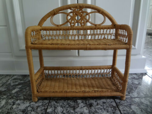 VTG POTTERY BARN WICKER RATTAN WOOD BATHROOM MEDICINE CABINET WALL COUNTER SHELF