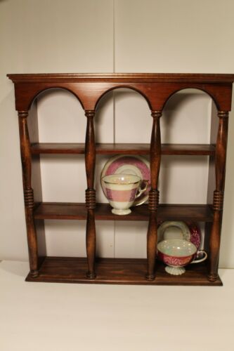Vintage Wood Wall Tea Cup and Saucer Curio Display Shelf