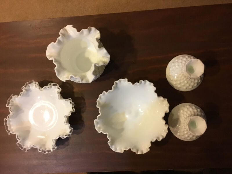 Title (ebay affiliate link): White Hobnail Milk Glass Five Items Some Fenton See Item Specifics and Photos