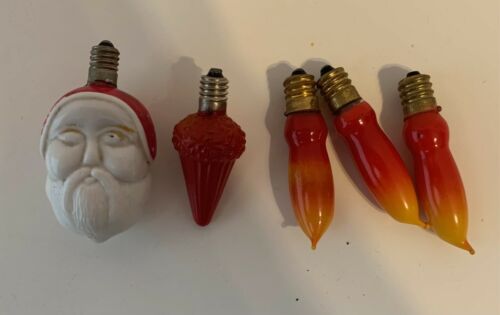 Vintage Christmas Light Bulbs Double Sided SANTA CLAUS HEAD MILK GLASS FLAMES