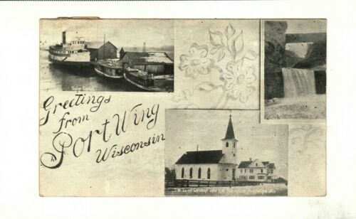 GREETINGS FROM PORT WING, WISCONSIN VINTAGE POSTCARD STAMP