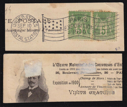 FRANCE 1900 CARD PIECE WITH U.S. POSTAL STATION PARIS EXPO CANCEL