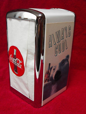 1994 Chrome & Metal Coca-Cola Napkin Holder & Napkins@