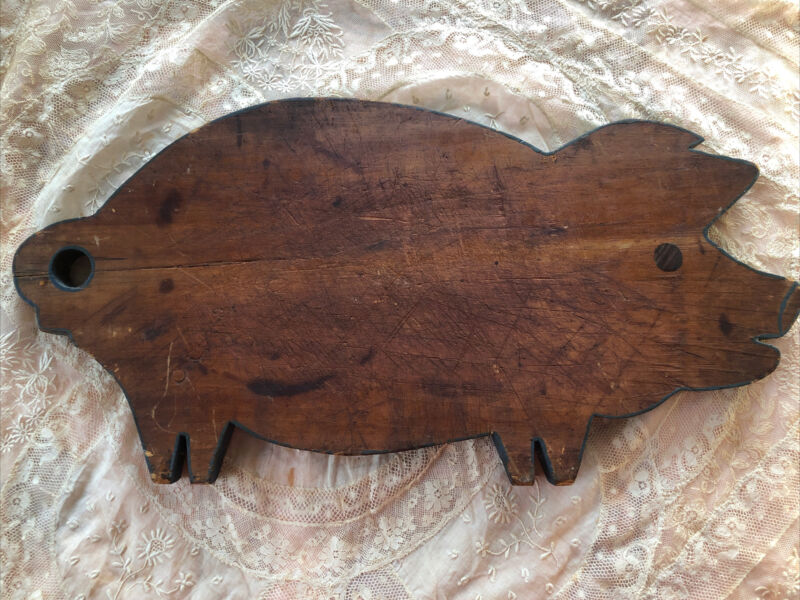 Title (ebay affiliate link): Vintage Large Primitive Wood Pig Shaped Cutting Board Old Blue Paint