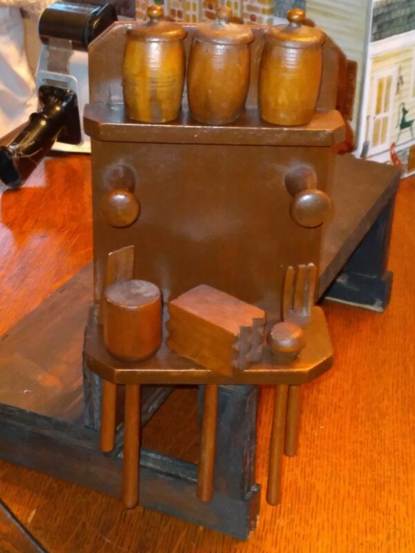 Antique Salesman Sample Size Primitive Wooden Wall Rack of Wooden Utensils,Jars