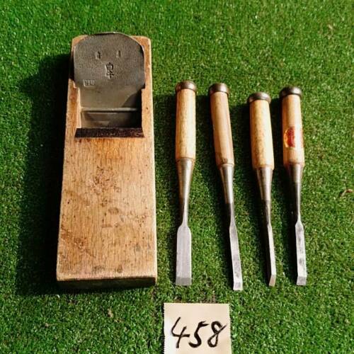 Japanese Vintage Chisel Nomi 4 pcs with plane carpentry wooden tool shape Good !