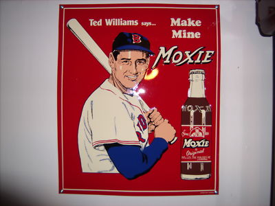 Title (ebay affiliate link): TED WILLIAMS AND MOXIE DRINK TIN SIGN/13 BY 11 IN