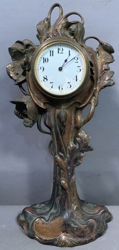 Title (ebay affiliate link): LG Ca.1900 Antique FRENCH Old ART NOUVEAU Era H&H Floral FLOWER MANTEL CLOCK