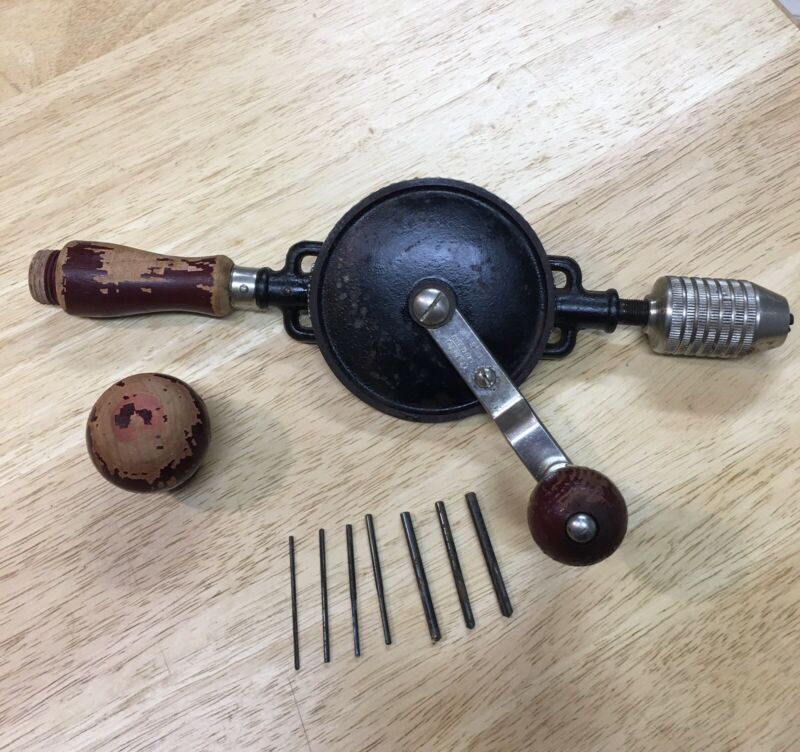 Vintage STANLEY No. 624 Egg Beater Style Drill with (7) Bits