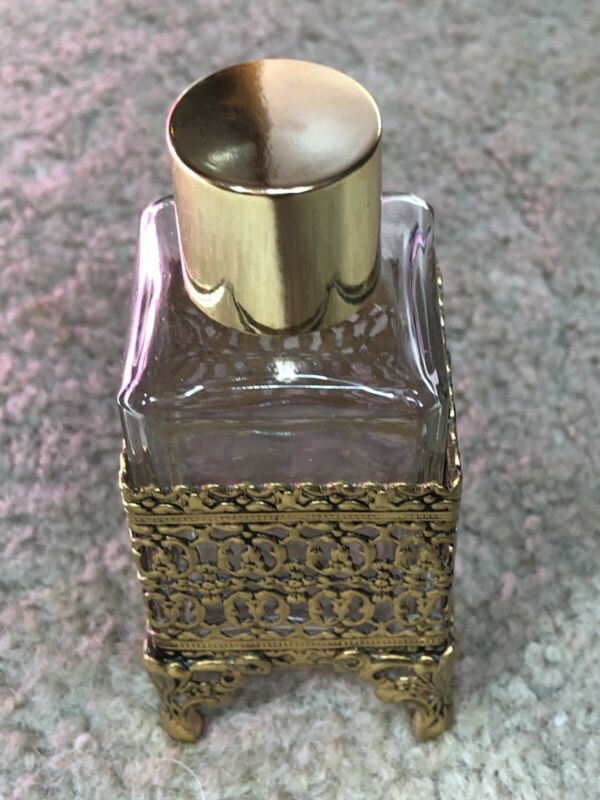 Antique Gold Ormolu & Glass Perfume Bottle