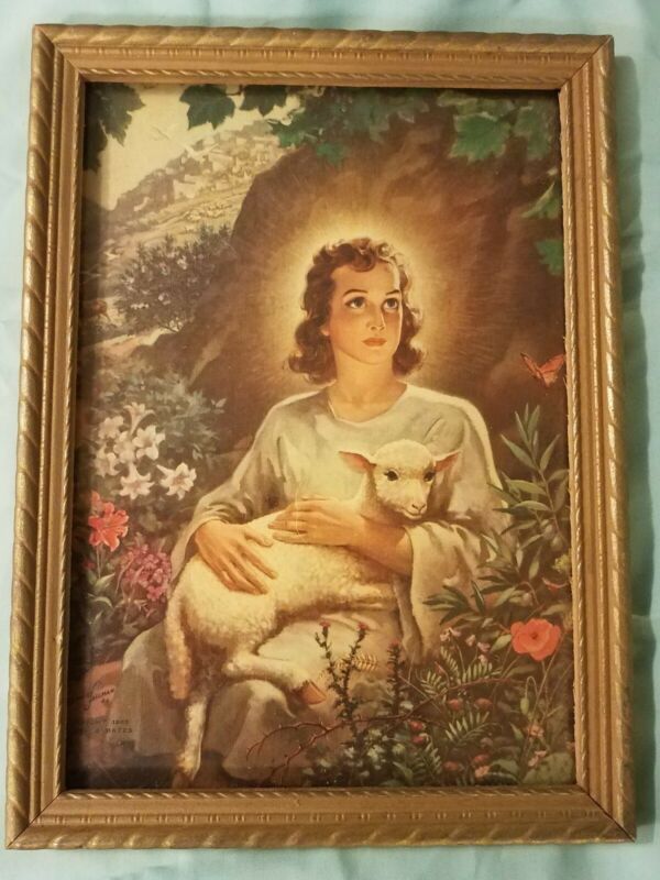 1948 VTG wooden picture frame old 5x7 gold hand carved mission primitive detail