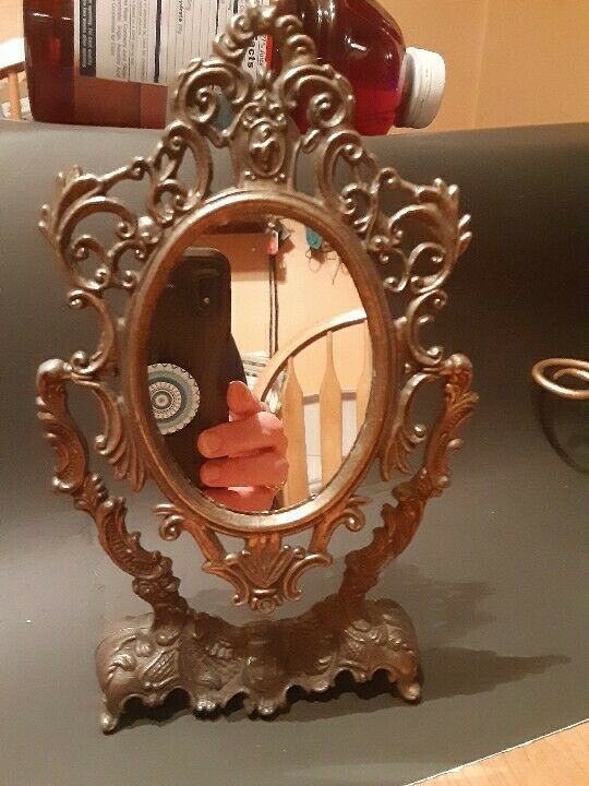 Vntg/Antique Metal Ornate Gold Filigree Swivel Mirror