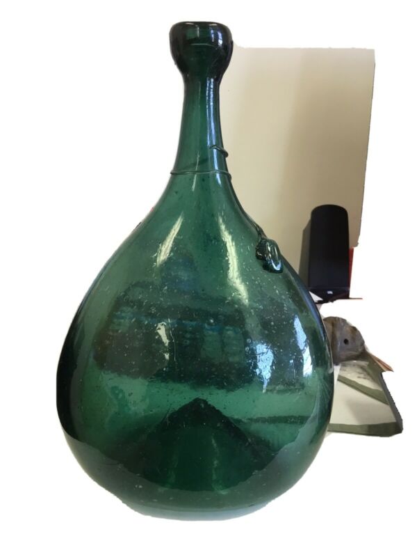 Antique Green Glass Pontilled Camel Freeblown Bottle No Reserve
