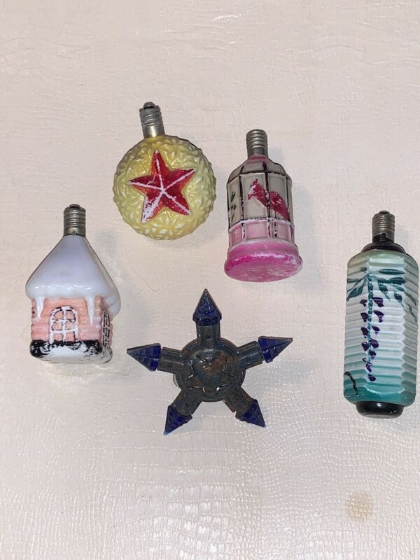 Title (ebay affiliate link): SET OF 5 VINTAGE CHRISTMAS LIGHTS 4 MILK GLASS AND 1 METAL STAR - SCREW IN BULBS