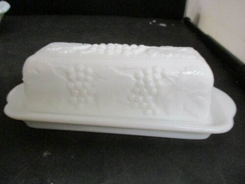 Title (ebay affiliate link): Genuine Imperial Glass Butter Dish Covered White Milk Glass Grape Pattern