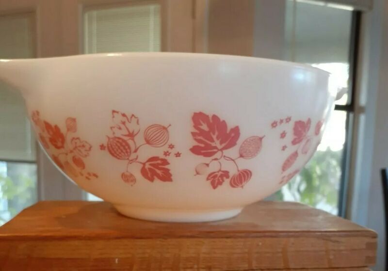 Title (ebay affiliate link): Vintage Pyrex White w/ Pink Gooseberry 443 2-1/2 Quart Cinderella Mixing Bowl