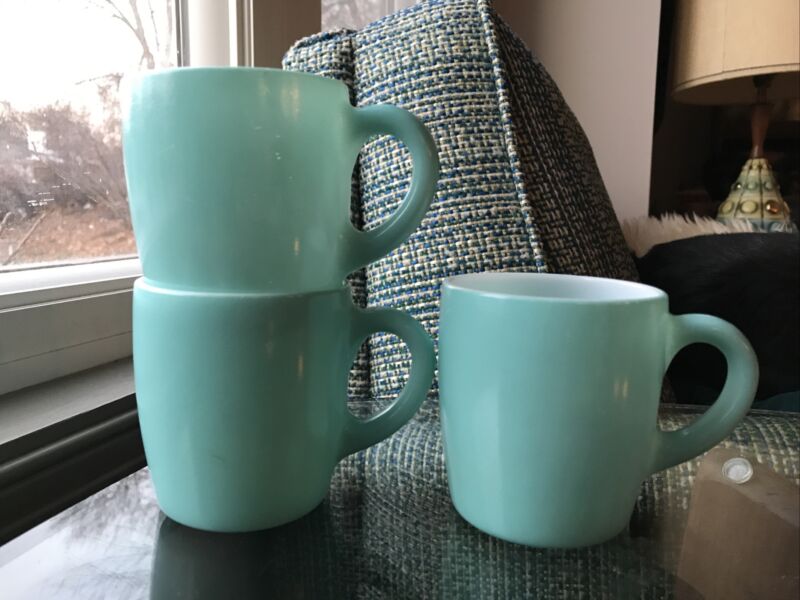 Title (ebay affiliate link): Vtg. Turquoise Lot 3 Crinoline Ruffle Hazel Atlas Mugs Cups Set Lot Aqua Blue