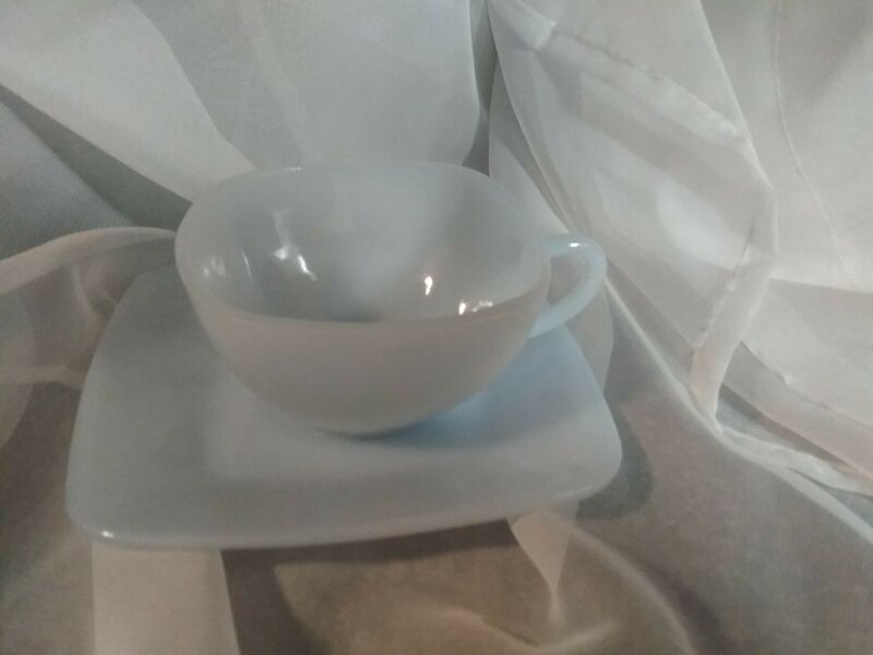 Title (ebay affiliate link): Fire King Delphite Blue Azurite Charm Square Tea Cup & Saucer Set Vintage